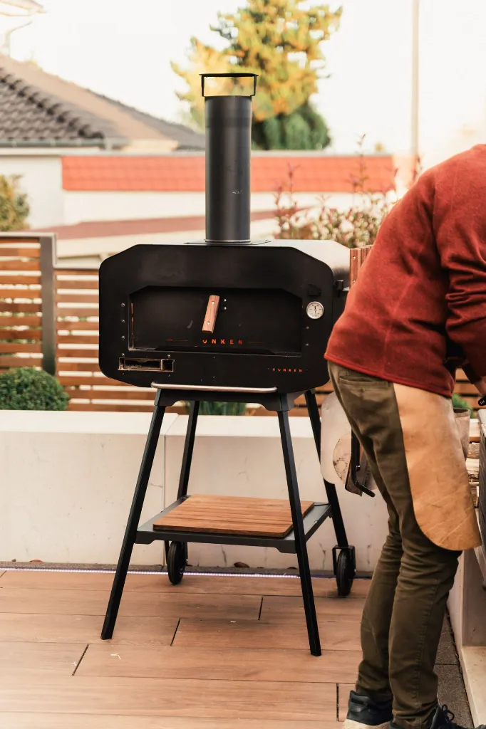 Le Vonken Home est entièrement fabriqué en acier inoxydable et dispose d’un double fond en pierre céramique d’une épaisseur totale de 5 centimètres, ainsi que d’une couche isolante en laine céramique de 8 à 9 cm d’épaisseur. Pour allumer le Vonken, vous pouvez utiliser du bois, du charbon de bois ou du gaz (si vous utilisez le module gaz compatible). La consommation du Vonken Home est extrêmement faible. La couche de pierre épaisse et l’isolation permettent de bien conserver la chaleur. Il est important de noter que vous pouvez toujours toucher l’extérieur en toute sécurité, même si la température à l’intérieur du Vonken atteint 500°C.